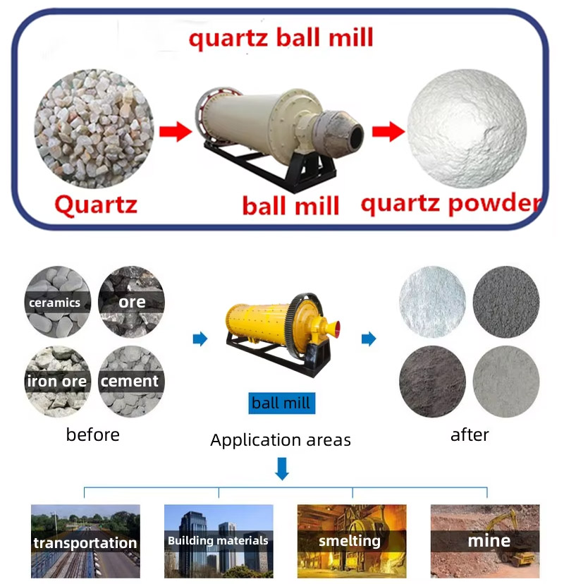 The ball mill is the key equipment for crushing the materials after they have been crushed. It is widely used in cement, silicate products, new building materials, refractory materials, fertilizers, black and non-ferrous metal mineral processing, glass and ceramics and other production industries to dry or wet grind various ores and other grindable materials.